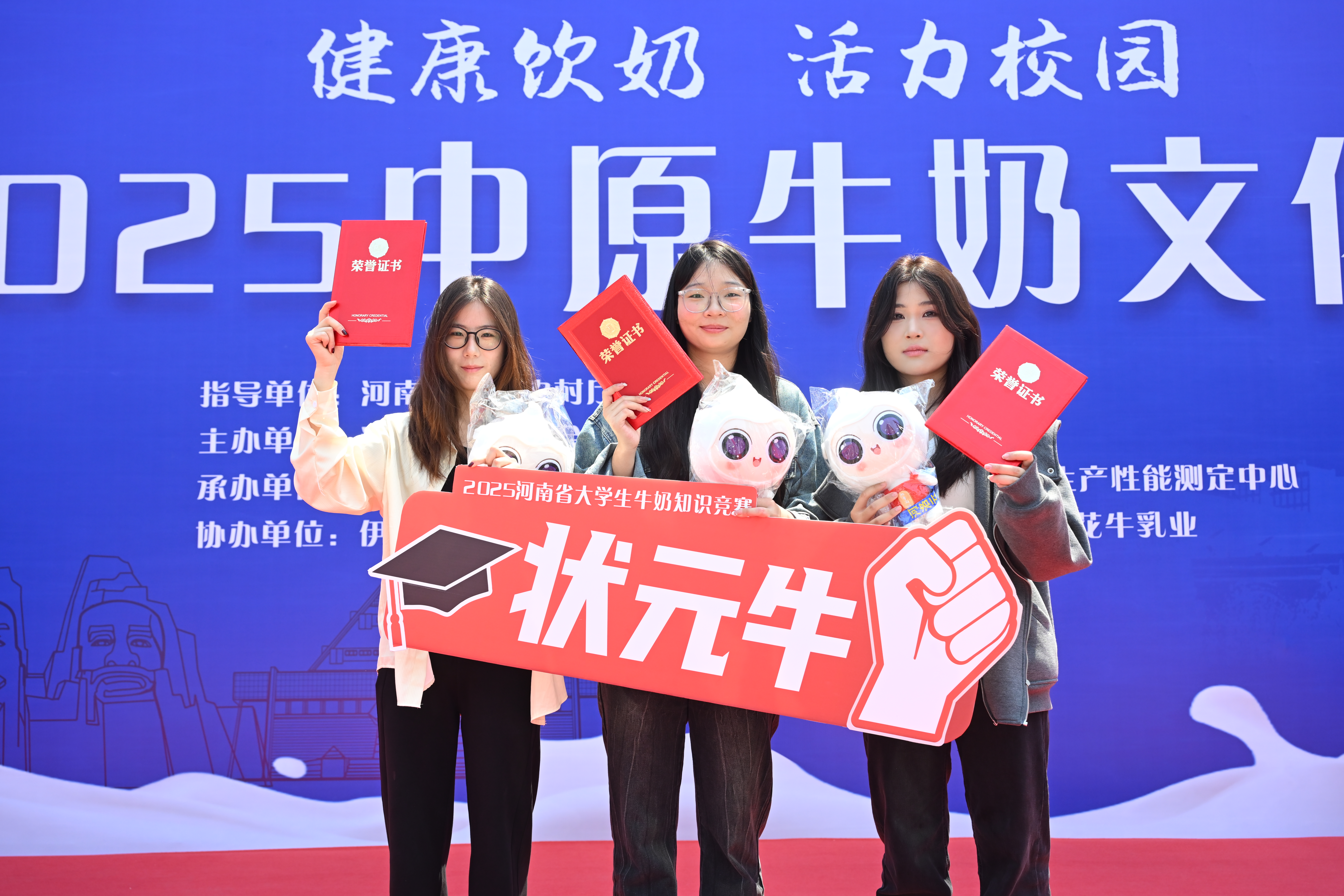 龙子湖校区欢声笑语,热闹非凡。以“健康饮奶,活力校园”为主题的2025中原牛奶文化节盛大开幕,兄弟省(市、区)奶业协会负责人,伊利、蒙牛、花花牛等等知名乳企代表,我校及周边院校师生等千余人齐聚一堂,共赴健康与美味之约,共话奶业高质量发展。