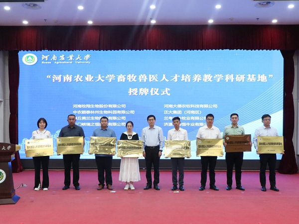 畜牧兽医人才培养教学科研基地”牌匾。动物医学院分别与商丘美兰生物股份有限公司、河南亿万中元生物技术有限公司签署校企合作协议,标志着校企合作向更深层次、更广领域迈进。