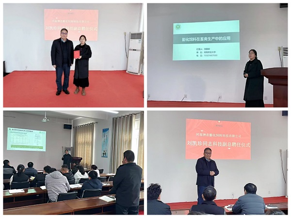 副院长孙宇在致辞中高度评价此次合作。他指出,学院始终以“产教融合、服务产业”为导向,此次聘任是深化校企协同育人与技术攻关的典范。孙院长表示,学院将全力支持刘凯珍博士在河南神农膨化饲料科技有限公司开展科研实践,共同打造集人才培养、技术研发、成果转化于一体的创新平台。