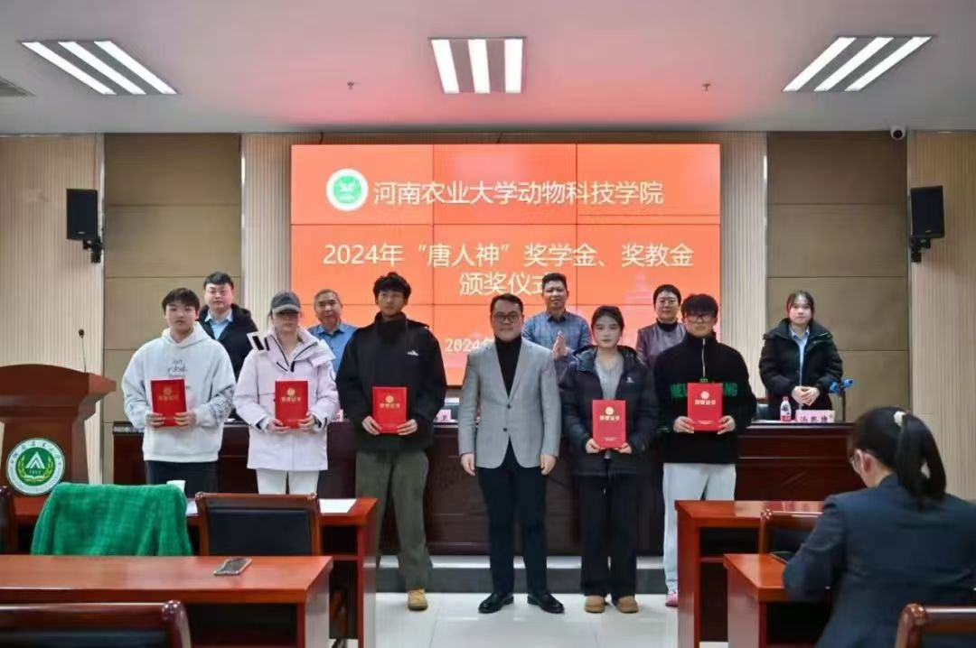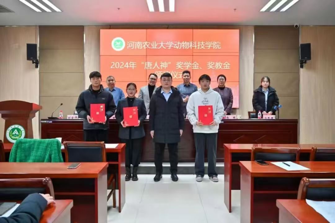 于龙子湖校区繁塔楼A324会议室举行2024年“唐人神”奖学金、奖教金颁奖暨第二届“唐人神班”开班仪式。唐人神集团(大学)执行校长赵海卫、唐人神集团人力资源中心招聘经理刘金伟和招聘主管汤思捷,校友办公室主任胡明忠、巨乳a片