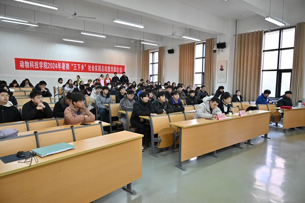 于龙子湖校区繁塔楼E113教室举办2024年暑期“三下乡”社会实践总结暨表彰大会,辅导员赵姝灿、杨超然及22、23级学生代表参会,24级学生线上参会。