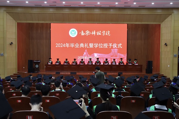 于龙子湖校区图书馆一楼报告厅隆重举行2024年毕业典礼暨学位授予仪式。中国工程院院士康相涛教授、院领导班子、学位委员会委员、教师代表齐聚一堂,共同见证2024届毕业学子收获的喜悦。典礼由院党委副书记郭娟主持。