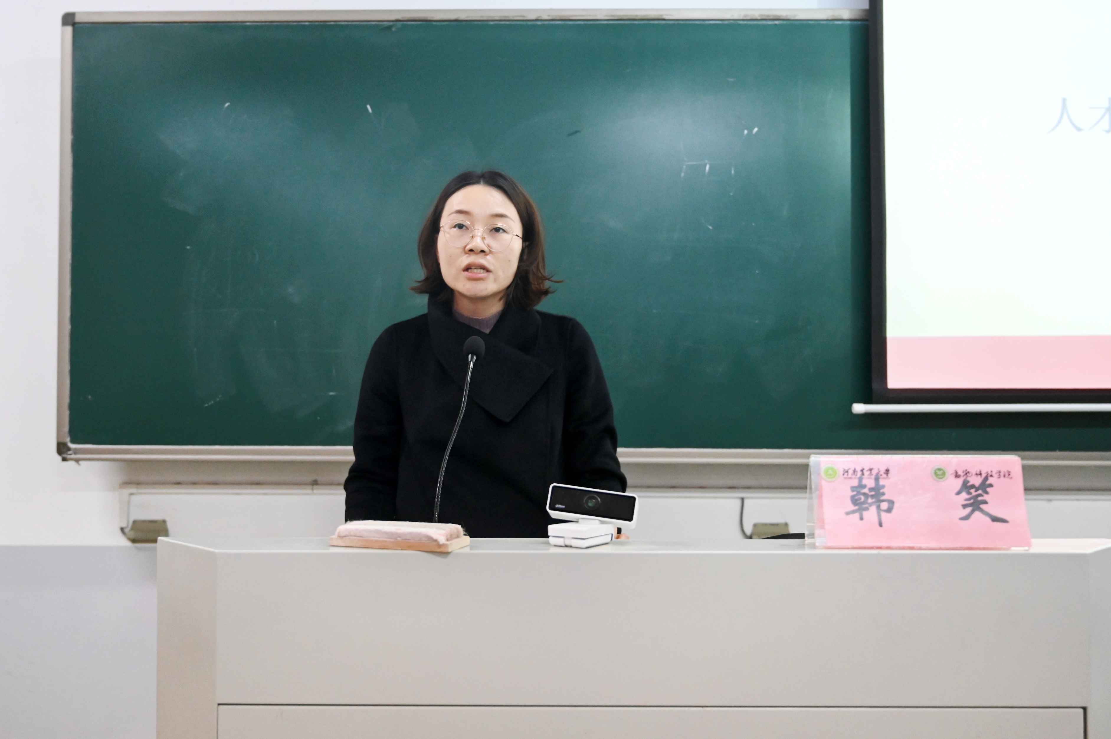 于龙子湖校区繁塔楼E113教室举行第27期笃实讲堂。特邀艾格多集团人资总监孙爱平为主讲嘉宾,院组织员兼团委书记韩笑主持,巨乳a片