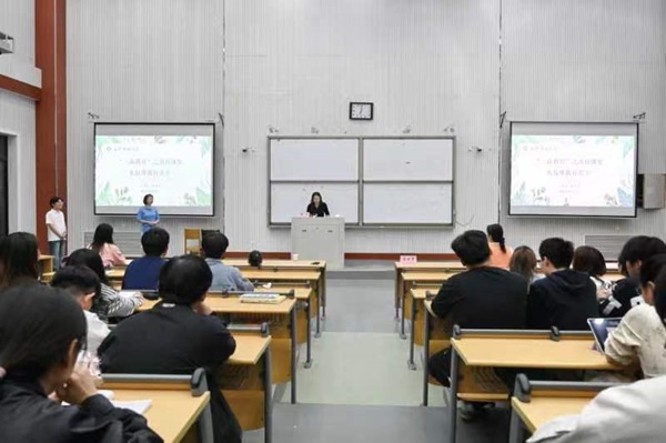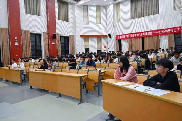 于龙子湖校区繁塔楼大教室五举办主题为“礼仪伴我行天下”的第四期美育课堂。本次活动特邀河南职业技术学院陈燕萍教授来院作专题讲座,巨乳a片
