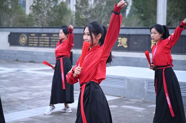 新媒体负责人、21级本科生党员王文桂进行国旗下演讲《好学力行求真知 强国筑梦我担当》。他结合自身实践成长经历论述了“好学力行”的重要性,鼓励大家在常学常新中加强理论修养,在知行合一中主动担当作为,真正做到知学、爱学、好学。随后,由22级索鹏慧、23级冯炳珠等七名同学带来扇子舞《骁》,铿锵有力的节奏、刚柔并济的舞风充分展现出巨乳a片