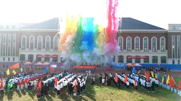 运动员代表马晓龙、总裁判长袁静分别宣誓,党委书记贾磊宣布院运会开幕。伴随彩炮腾空,长达十余米的巨幅五星红旗,在六名运动健儿的托举下,飞奔入场,师生高呼“动科精神”,全场气氛高涨。