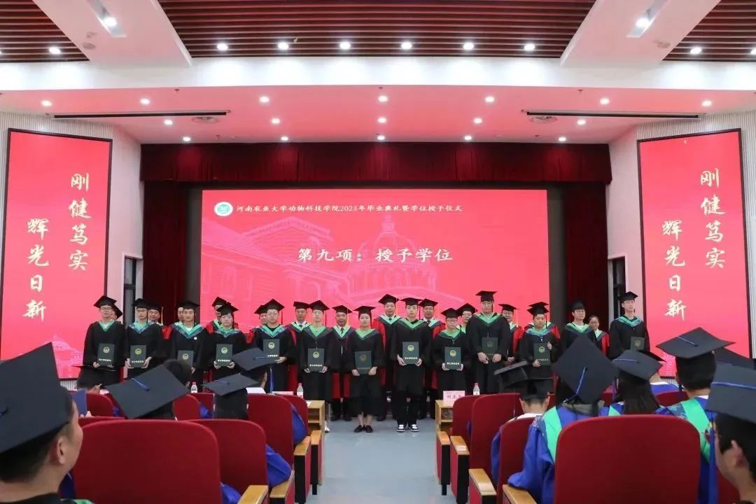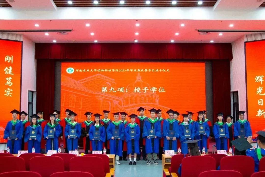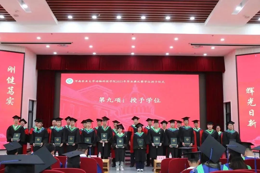 院长李明讲话,他表示,大学四年虽经历三年疫情,但动科学子克服困难,成长进步,圆满完成学业,增强了“人生变改故无穷”的敬畏和尊重,奏响了“我与祖国共命运”的青春旋律和时代强音,收获了关于世界、生命与人性的深刻思考,积攒下了行稳致远的坚定和力量,用实际行动诠释了动科精神,临别之际,他嘱咐毕业生们一是面对瞬息万变的世界,仍要坚持学习,只有不断学习,才能充实自己,以学为基,主动求知;二是面对纷繁复杂的社会,要积极主动应变,走出舒适区,敢变化、善竞争、多定力、少盲从、真努力;三是面对追光逐梦的征途,要稳稳向下扎根,要根植祖国所需,把青春小我融入到祖国大我,让个人命运融入国家的脉搏,在奋进新征程中成为“参天大树。他祝福全体毕业生逐梦前行,无惧风雨,用青春风采书写人生华章。