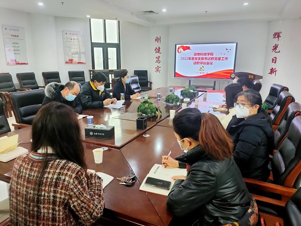 本网讯 (通讯员 赵姝灿)1月13日上午,学院党委在龙子湖校区第一实验楼北330会议室召开2022年度党支部书记抓党建工作述职评议会议。院领导班子、各教工党支部书记和党员代表参加会议,会议由党委副书记郭娟主持。