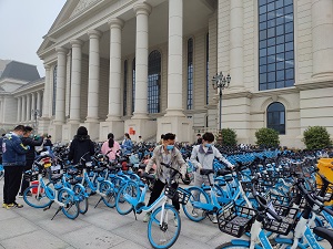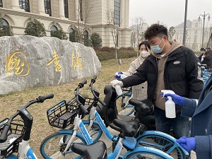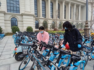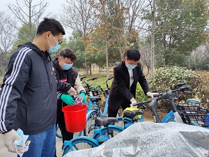 共享单车给学生带来了便利的同时也带来了烦恼,乱停乱放的现象总是屡见不鲜,特别是横七竖八地随意停放,看得让人“刺眼”。下午3点,党员志愿者们对学校实验楼和图书馆等周边的共享单车,开始进行集中摆放,回归原位。共享单车都是锁住的,男同志一鼓作气抬到指定位置,女同志通过合作,统统将现场的共享单车摆放整齐。针对单车上的灰尘、垃圾、小广告等现象进行深度清洗。存在损坏问题的单车,统一安放并向哈啰单车运维反映维修,清洗结束后,所有共享单车实行无差别消毒,将车把手、车座、车篮、车锁等骑行者易接触的部位,进行喷洒消毒,确保干净无污物并进行标注。让大家能够放心骑行,最大程度保障出行的安全。