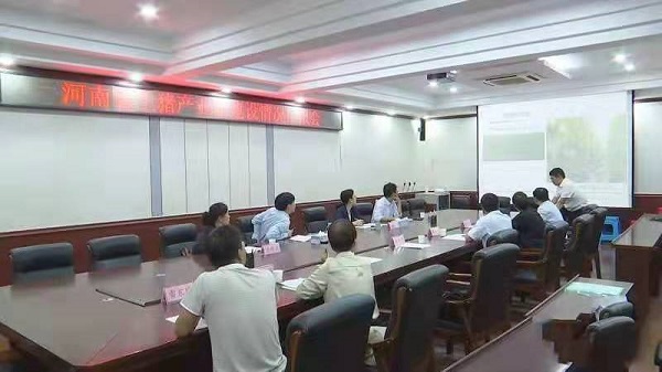 河南省种猪场党总支书记彭峰汇报正阳种猪场生猪现代农业产业园的基本情况