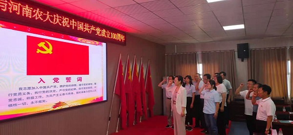 本网讯(通讯员 崔亚垒)7月3日,在中国共产党成立100周年之际,动物营养与饲料科学系教工党支部与洛阳希望生物科技有限公司党支部联合开展“奋斗百年路、启航新征程”党建活动。洛阳市孟津区政协副主席赵浩卿,院党委副书记郭娟,洛阳希望生物科技有限公司董事长谢二伟,全国优秀党务工作者、孟津县常袋镇马岭村党支部书记马其祥和校企双方30余位党员参加了此次活动。