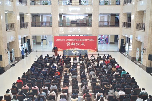 、动物医学院在龙子湖校区举行院徽启用暨学院成立揭牌仪式。中国工程院院士、校长张改平,副校长尚富德出席仪式,校长办公室等职能部门负责人、学院师生代表参加仪式。仪式由尚富德主持。