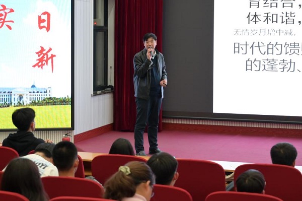 专业相关的诗词讲述“动科的诗和远方”,以郑东新区的十年变化提醒同学们,时代在不断向前发展,要以开放的思维,用自己所学的专业立足社会,贡献时代。他阐述了马斯洛需求层次理论,并列举著名企业用人标准、优秀毕业生事例等来分析大学生活中应注意的问题,强调青年人应锻造自然科学、专业技术等方面能力,结合青年才俊“三字经”提出动科学子的素质行为准则。最后,贾磊寄语学生要不断提升自身实力,携手打造动科学院金名片。