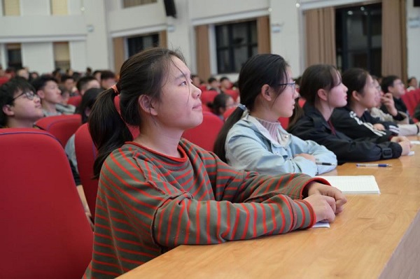 党委书记贾磊在繁塔楼大教室一为本科生带来一场精彩的思政课。团委副书记韩笑、2020级新生及全体学生干部聆听了报告。