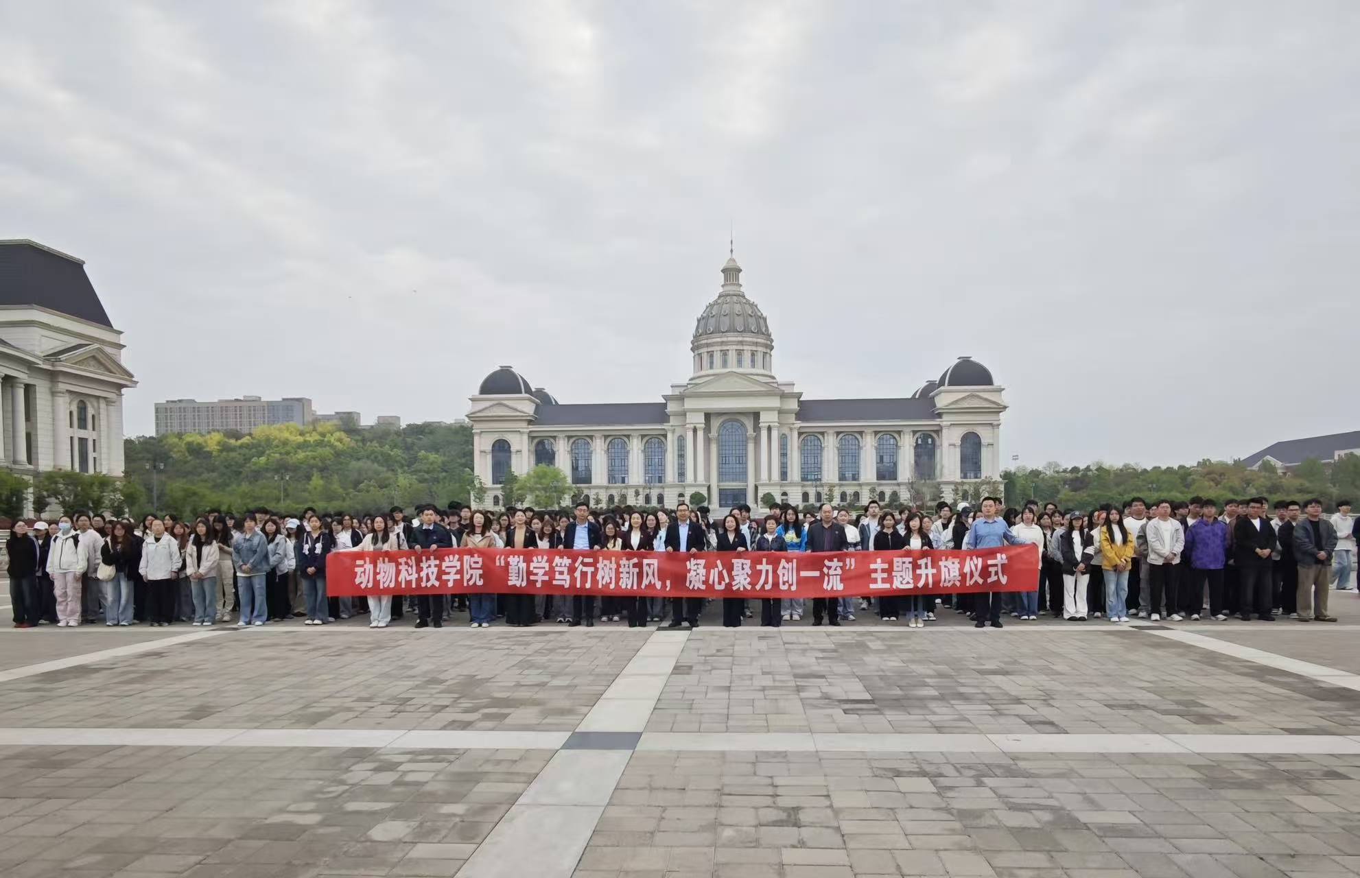 本网讯(通讯员 温心怡)4月13日清晨,学院在龙子湖校区隆重举行“勤学笃行树新风,凝心聚力创一流”主题升国旗仪式。学院领导班子、教师代表及全体学生参加仪式。仪式由院党委副书记王玲主持。