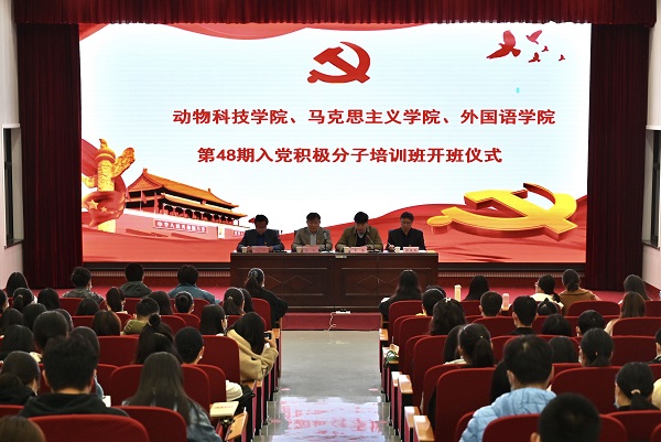 、马克思主义学院、外国语学院关于举办第48期入党积极分子培训班的通知》,张俊杰宣读了《入党积极分子培训班学员管理规定》。