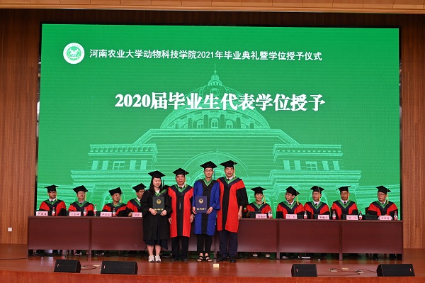 33位优秀毕业生上台领取证书、8位校友联络员上台领取聘书。毕业生代表、2017级动科3班王梦杰分享了自己与农大、与动科的青春故事,感谢母校、感谢恩师多年来的悉心培养。在即将离校之际,纵然不舍,仍与同学共勉:恪守学习之志、常怀爱国之心、赓续奋斗精神,她相信千里难阻心音相连,无论走到哪里,走的多远,作为农大学子,都会记得常回母校,共叙芳华师生情,见证母校新发展!