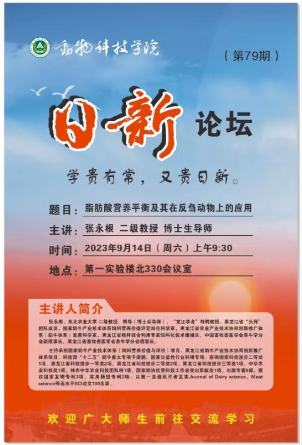 东北农业大学张永根教授将做客巨乳a片 “日新论坛”(第79期)