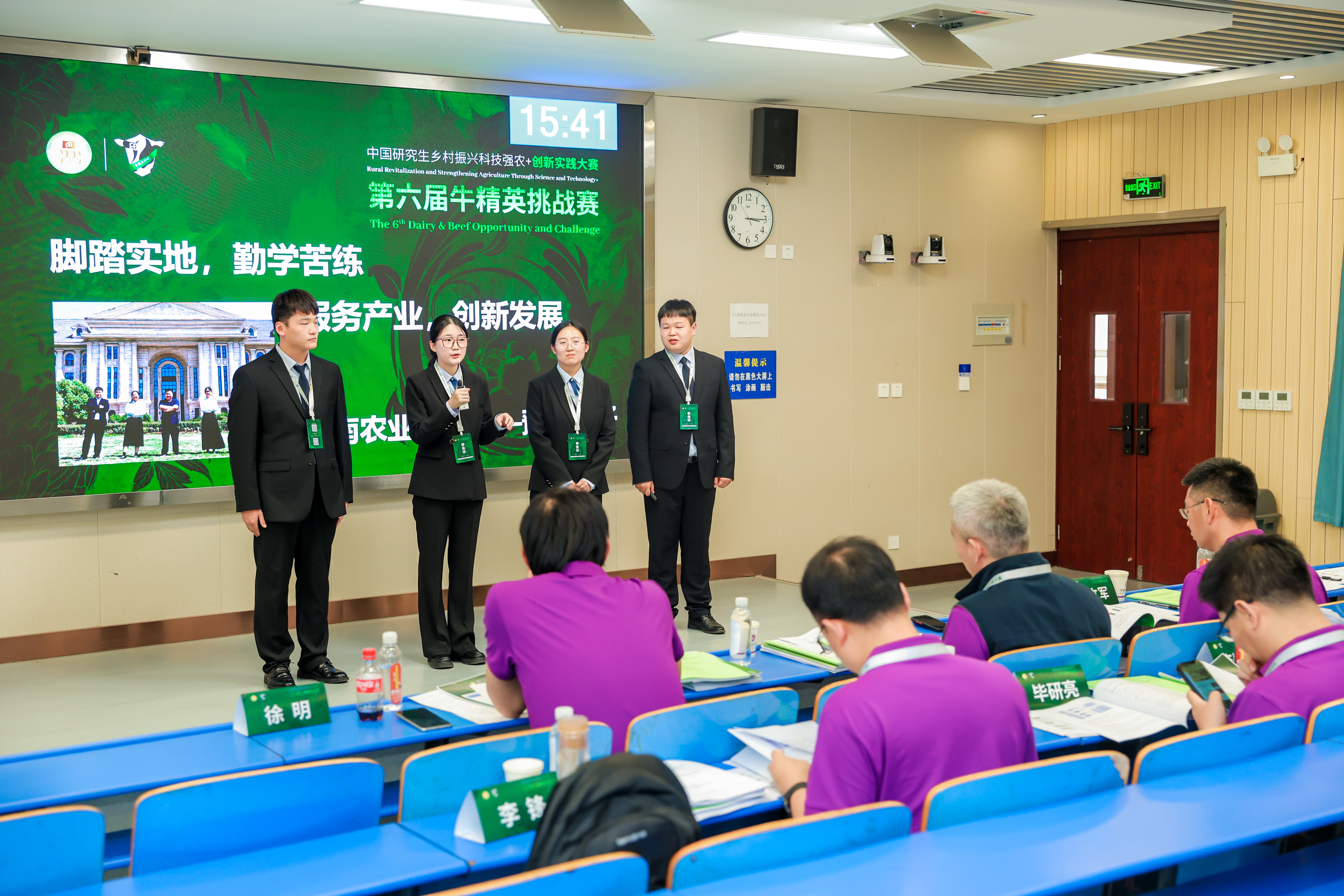 选拔赛。经过校内的严格选拔,最终胜出三支优秀队伍,共12名研究生代表学校出征全国总决赛。奶牛组由张传凯博士担任队长、肉牛组由张岩博士担任队长、揭榜挂帅专项由张黎杰博士担任队长。