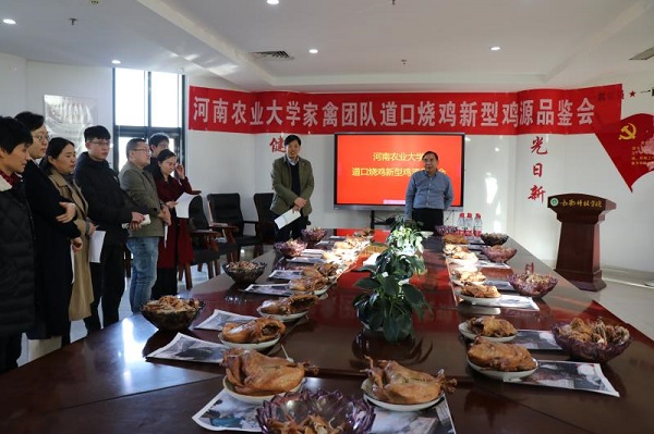 主办的“道口烧鸡新型鸡源品鉴会” 分别在我校龙子湖校区第一实验楼北330会议室和滑县金龙商务酒店两地如期举行。