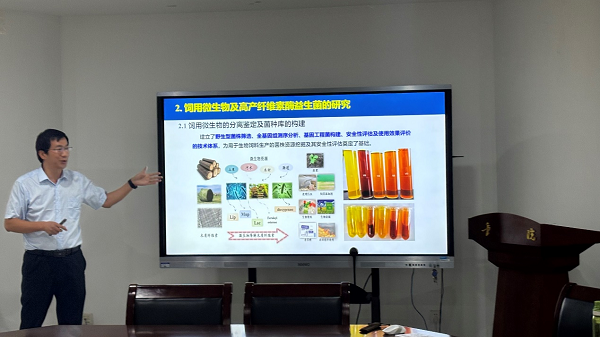 畜牧学科的相关设置及“双一流”建设特色,紧接着展示了团队在羊营养调控方面的长期工作成果,从羊肠道微生物定植及演化规律、纤维素酶挖掘及饲用微生物菌株的定向化改造和安全性评价、生物发酵饲料开发及推广等多个方面介绍了其团队在基础研究、应用研究及技术推广方面取得的凸出成就。报告结束后,杨雨鑫教授和相关专家、同学就相关学术问题开展了深入的交流和讨论。