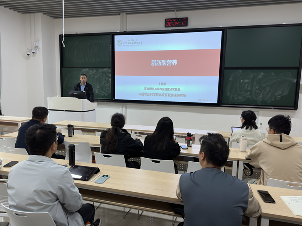 在第二实验楼-中-120教室举办了第118期“日新论坛”,本次论坛邀请中国农业科学院北京畜牧兽医研究所卜登攀研究员带来以“脂肪酸营养”为题的学术报告,论坛由王志祥教授主持,高腾云教授、王林枫教授等教师及研究生参加报告会。