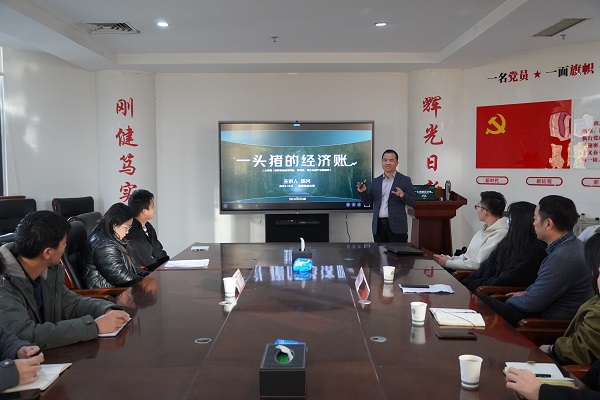 陈兴以《一头猪的经济账》为题作报告