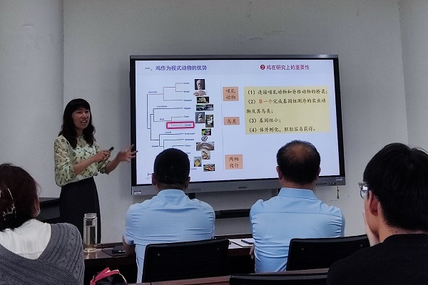 在第一实验楼北530会议室举办了第70期“日新论坛”。成都大学教授,博士生导师李地艳老师以“鸡遗传与进化研究”为主题为师生做了一场别开生面的报告。刘小军教授主持会议。
