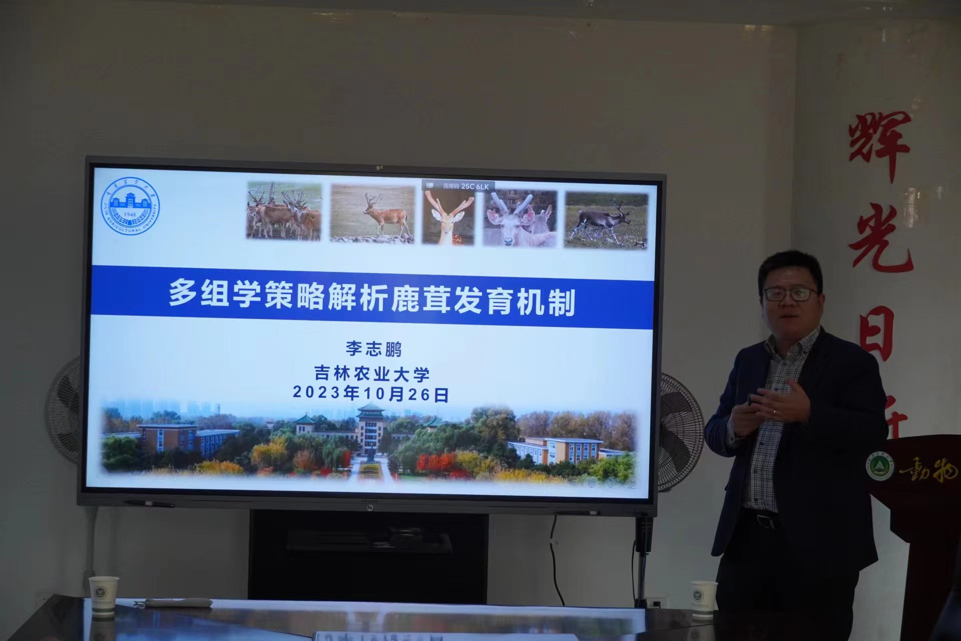 李志鹏教授以《多组学策略解析鹿茸发育机制》为题,从基因组水平及微生物水平详细讲解了鹿茸发生发育机制、微生物对鹿茸生长的调控作用,并利用动物模型阐明了鹿茸完全再生的细胞机制及鹿茸增产的营养调控策略。李教授团队的研究结果,不仅为哺乳动物再生能力的研究提供了全新的认知,也为哺乳动物骨骼修复和人类骨骼的再生医学提供了新的研究方向。通过李教授的报告,同学们了解到关于哺乳类动物肠道微生物的多样性及其与宿主的互作机制,拓宽了同学们的知识面,启发了同学们的思考。在互动环节,李老师详细解答了师生的提问。