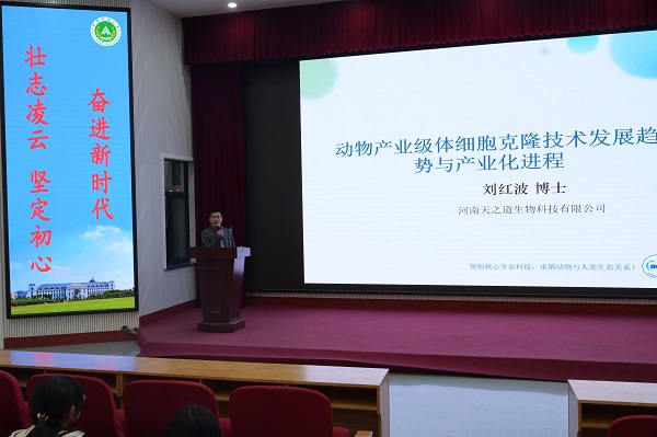 在教学楼大教室一举办第四期笃实讲堂,邀请优秀校友、河南天之道生物科技有限公司联合创始人及 “精准云基因研究院”技术负责人刘红波博士为主讲嘉宾,副院长田亚东、动物生产与系统工程系书记李新建、2020级新生和部分2019级学生参加活动。讲堂由副院长田亚东主持。