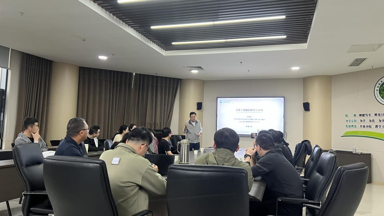 针对干细胞技术在畜牧领域的应用转化,刘教授详细阐述了两大前沿方向——基于干细胞技术的抗病毒分子筛选平台与抗衰老分子筛选技术,为干细胞疗法从实验室到产业应用提供了系统性解决方案。刘教授讲解后,与会教师围绕技术难点、转化路径等议题展开热烈讨论,现场学术氛围浓厚,深化了理解,拓宽了思路,为相关研究的推进奠定了良好基础。