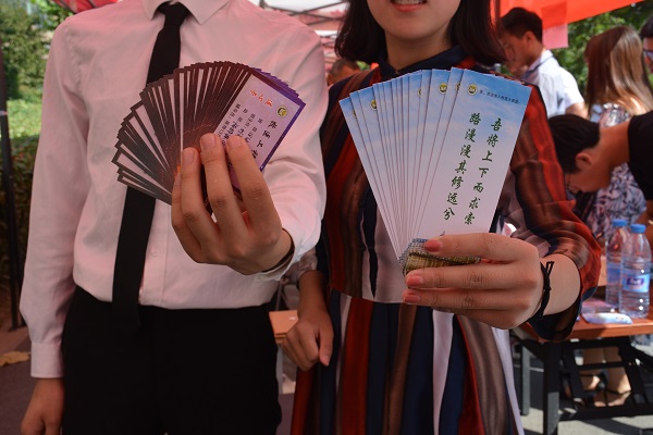 上午8时许,新生陆续前来,5个专业15个班级的工作人员按照专业划分一字排开,现场实行扫码报道,配合详细的报到流程图及充足的咨询点,实现新生报道“一站式办理”。报到后,学院还为新生送出一份暖心“大礼包”,即印有励志古诗词的精美书签、印有班级负责人联系方式的连心卡、高年级同学手绘的龙子湖地图,同时还发放了防骗攻略、宗教政策明白卡、大学资助政策知多少宣传页等,力争为新生随后的学习生活提供周到的服务。
