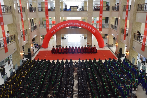 最后,院领导与学位委员会成员为毕业生一一拨正流苏,颁发硕士、学士学位证书并合影留念。伴随着校歌《绿色颂》,学院2019届毕业典礼暨学位授予仪式落下帷幕。(文/韩笑)