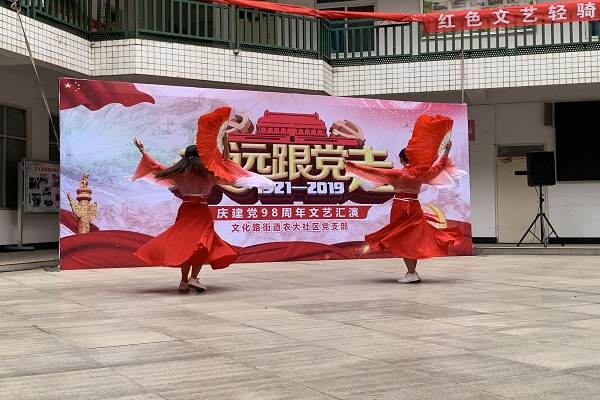 在6月20日下午,文化路街道农大社区党支部举行的“永远跟党走”庆建党98周年文艺汇演中,巨乳a片