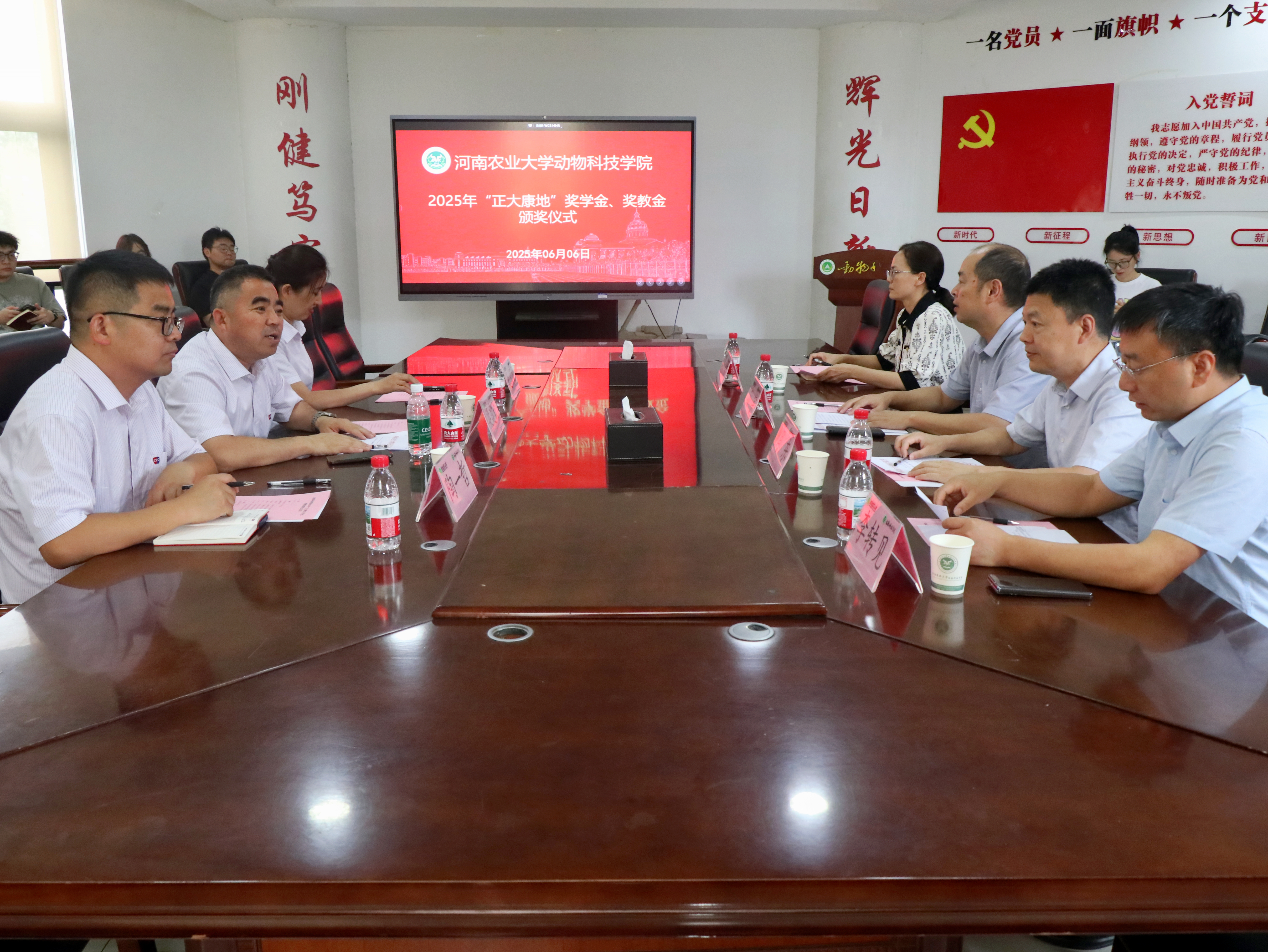 于龙子湖校区第一实验楼北330会议室举行2025年“正大康地”奖学金、奖教金颁奖仪式,正大康地北方常务副总经理梁建设、区综合办主管赵威威、区人事主管陶一哲,我校校友办副主任闫东、巨乳a片