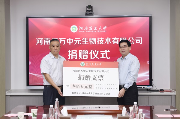 郑文革介绍了河南亿万中元生物技术有限公司的发展历程、经营范围、经营理念。他表示,个人和公司的成长离不开母校辛勤培养,他一直关注和关心母校发展,为母校近年取得的成绩深感自豪。他希望,通过此次捐赠,能够与母校展开更广泛的校企合作,加速产学研进程,将科研成果转化为生产力,达到行业先进水平。