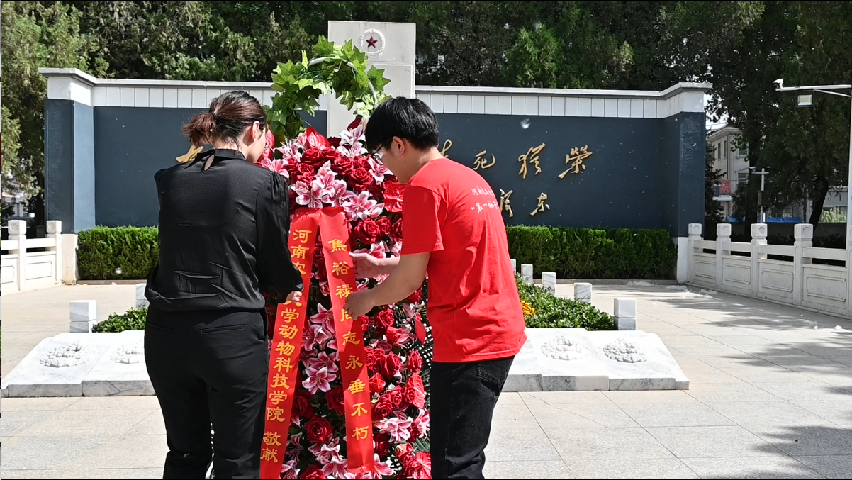 在纪念园内,全体人员怀着无比崇敬的心情共同拜谒焦陵,敬献花篮,瞻仰烈士陵墓,集体鞠躬致敬。