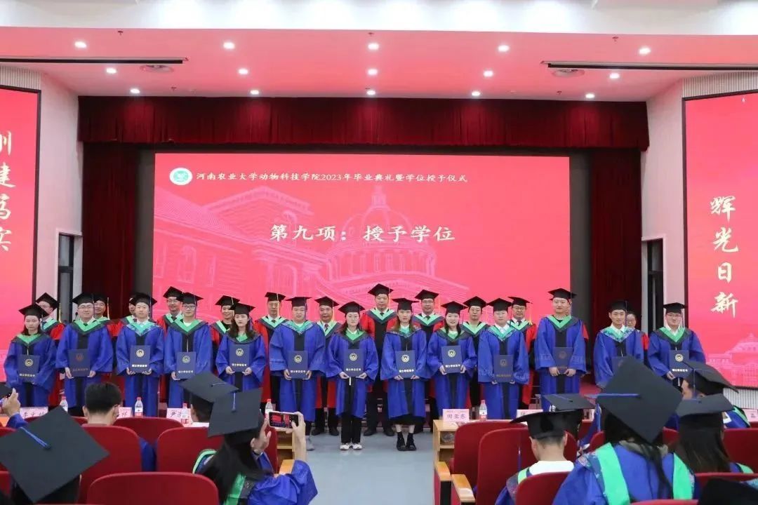院长李明讲话,他表示,大学四年虽经历三年疫情,但动科学子克服困难,成长进步,圆满完成学业,增强了“人生变改故无穷”的敬畏和尊重,奏响了“我与祖国共命运”的青春旋律和时代强音,收获了关于世界、生命与人性的深刻思考,积攒下了行稳致远的坚定和力量,用实际行动诠释了动科精神,临别之际,他嘱咐毕业生们一是面对瞬息万变的世界,仍要坚持学习,只有不断学习,才能充实自己,以学为基,主动求知;二是面对纷繁复杂的社会,要积极主动应变,走出舒适区,敢变化、善竞争、多定力、少盲从、真努力;三是面对追光逐梦的征途,要稳稳向下扎根,要根植祖国所需,把青春小我融入到祖国大我,让个人命运融入国家的脉搏,在奋进新征程中成为“参天大树。他祝福全体毕业生逐梦前行,无惧风雨,用青春风采书写人生华章。