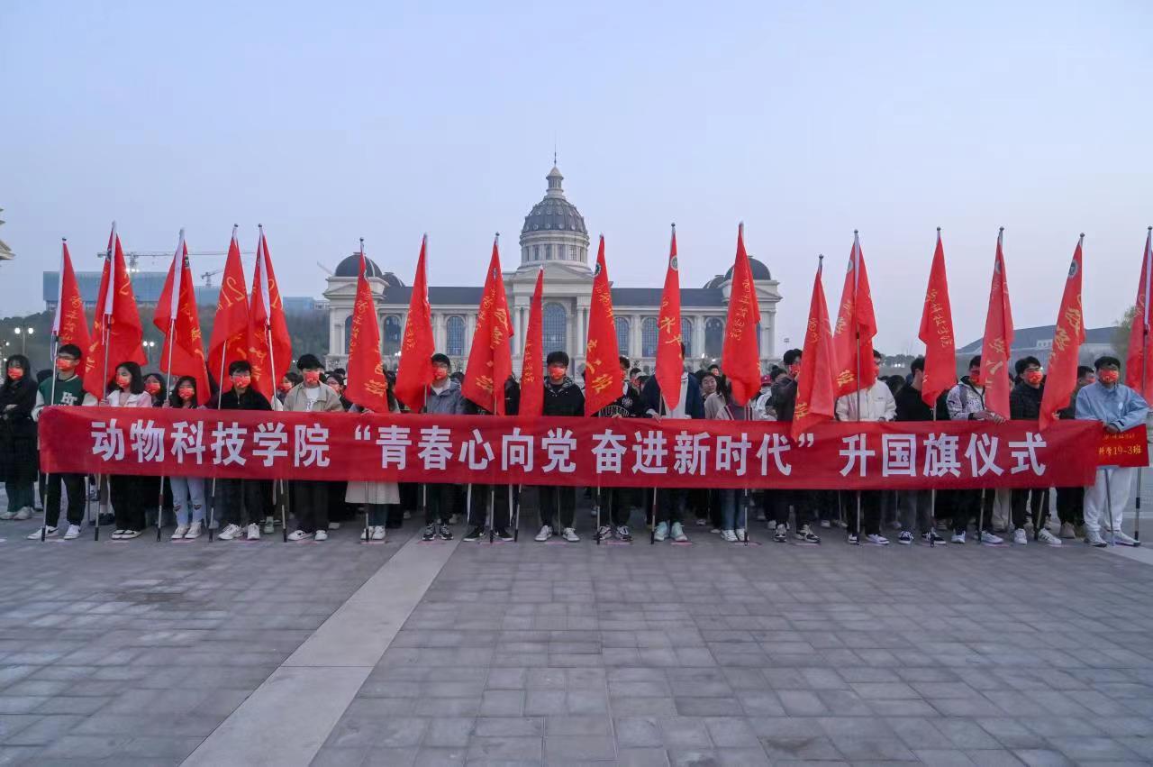 本网讯(通讯员 赵姝灿)阳春布德泽,万物生光辉。为持续深化“三品”主题教育,厚植爱国主义情怀,巨乳a片 于3月6日早7点在龙子湖校区举行“青春心向党 奋进新时代”升国旗仪式,表达动科师生对党和祖国的无限热爱和崇高敬意。仪式由副院长付彤主持。