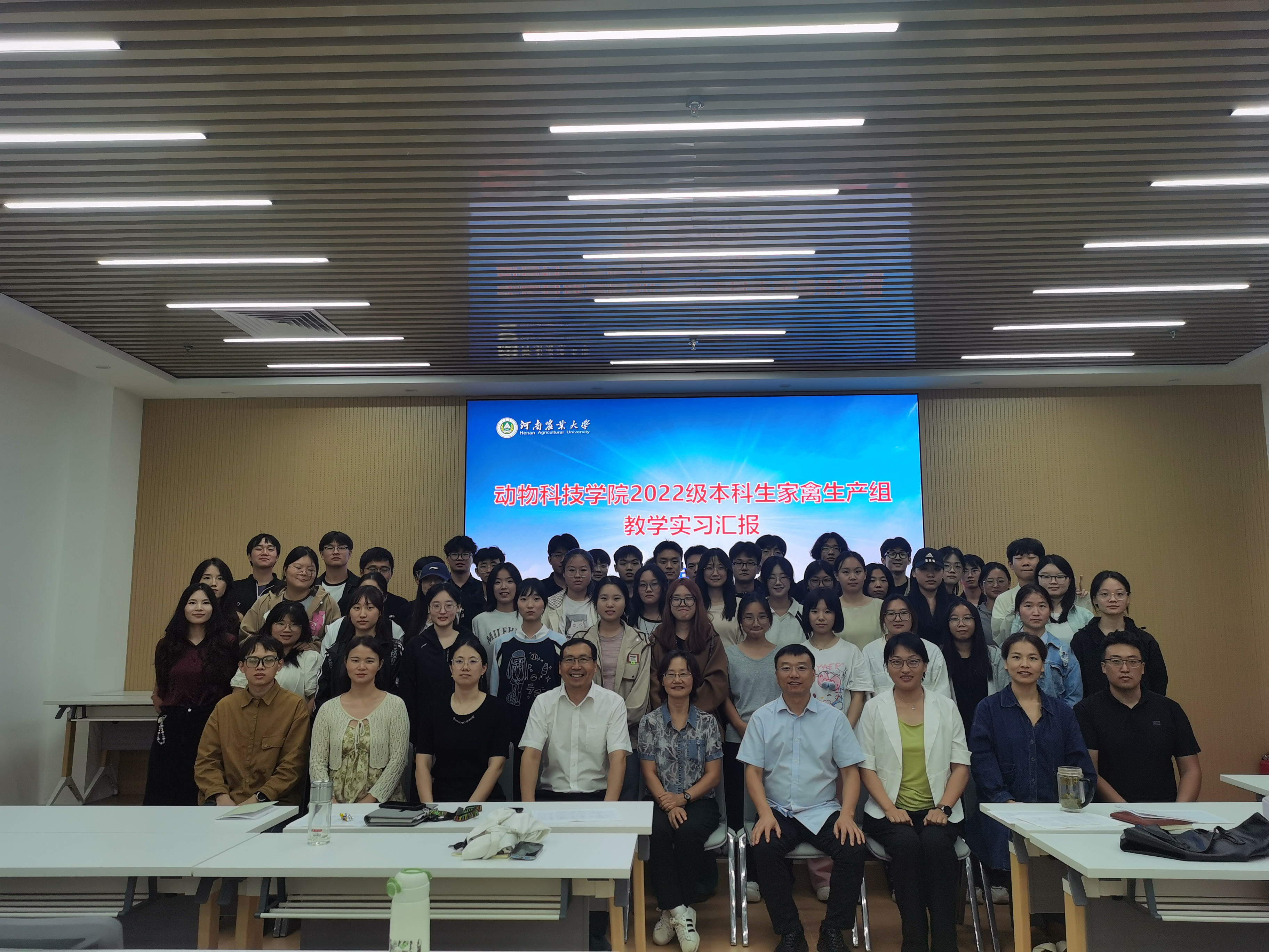 田亚东教授、黄艳群教授、李转见教授、李文婷教授、李红副教授、李东华副教授、张彦华副教授及金炜炜、郭玉龙等实习指导老师,与2022级家禽生产组全体本科生共同参会。