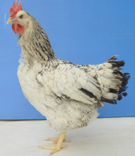 H系:雏鸡公、母鸡均为快羽,黄胫、灰白羽,背、颈、翅带黑斑;成年公、母鸡均为正常型,黄胫、少量白胫,浅芦花羽(哥伦比亚羽色),单冠、黄白皮肤,蛋壳颜色为褐色。
