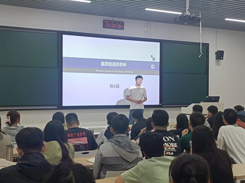 刘小磊教授的学术报告即全面又清晰,以基因组选择育种的视角,回忆了育种学的重要概念,阐述了全基因组选择育种统计模型及其基因组育种计算。详细介绍了其团队在猪全基因组选择育种领域取得的突破性成果。报告结束后,刘小磊教授与在场的青年教师及研究生们就相关学术议题进行了深入的交流和讨论,激发了与会者的研究热情和学术思考。