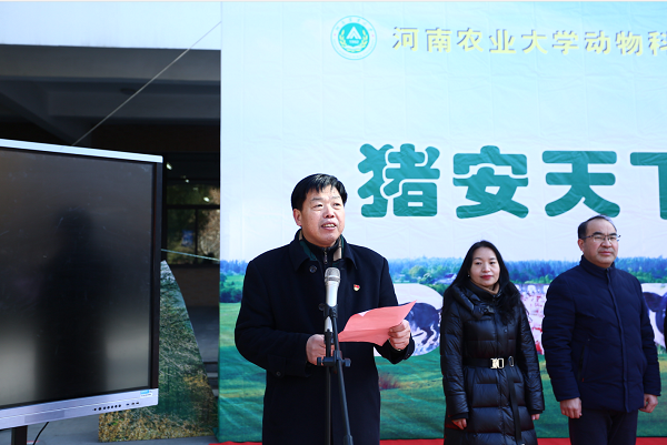 院党委书记贾磊主持开幕式,院长李明在讲话中介绍了举办本次文化节的初衷、并借“福猪拱门“之意祈愿各位来宾富贵吉祥,副校长尹新明宣布动物文化节开幕。